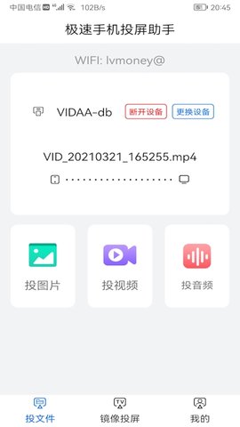 3. 选择投屏方式在软件界面中选择“镜像投屏”或“文件投屏”,根据需要选择相应的投屏模式。